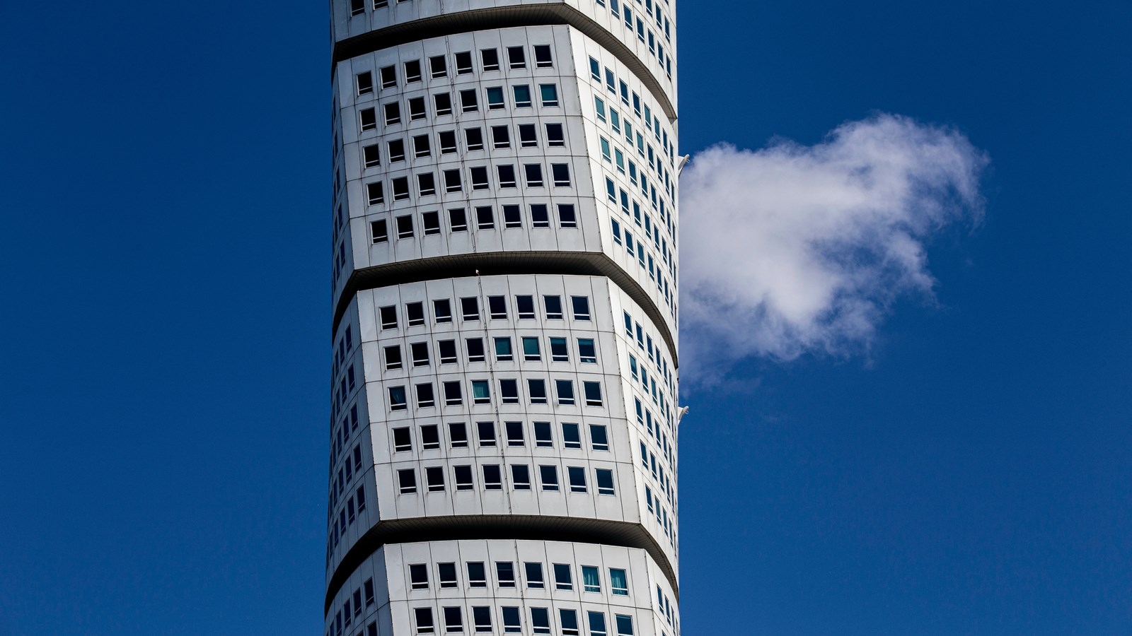 The Turning Torso is a neo-futurist skyscraper designed by Spanish architect Santiago Calatrava and built in 2005. At 190 metres, it was the tallest building in the Nordic region until September 2022, when it was surpassed by Karlatornet in Gothenburg, which is still under construction. The Turning Torso consists of nine cubes with a total of 54 floors, where winding from base to peak is 90 degrees. Today, the Turning Torso is a residential building with 147 apartments of various sizes, from one-bedroom studios of 45 square metres to threes bedroom flats of 190 square meters. During the summer you have the opportunity to visit its top floor.