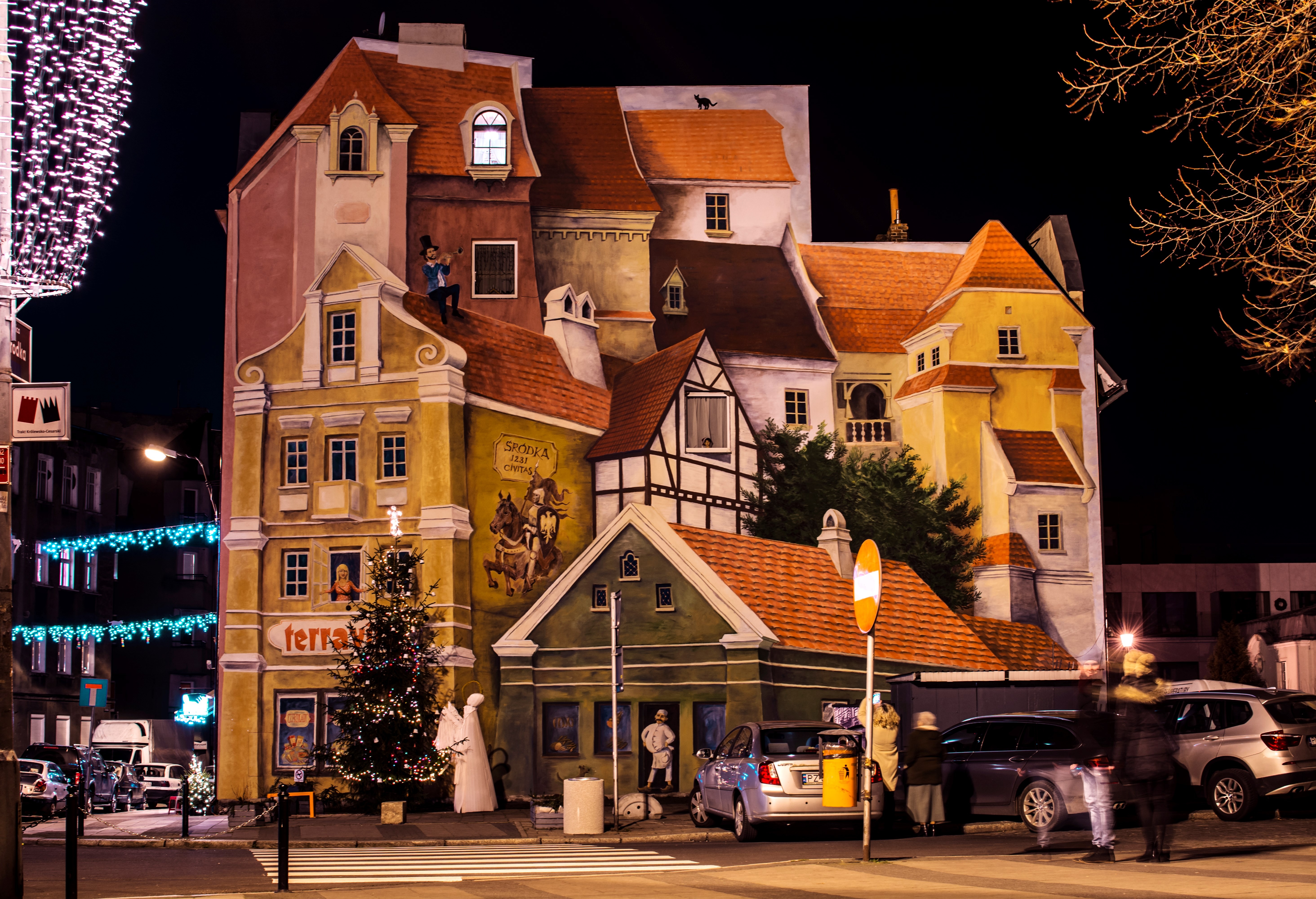 The mural was painted in 3D on the wall of a townhouse, and it tells the story of the Śródka district of Poznań. A prince, a bugle call player, a cat or a butcher’s stall can all be seen in the painting. It was voted one of Poland’s New Seven Wonders in 2016 in the National Geographic Traveler poll.