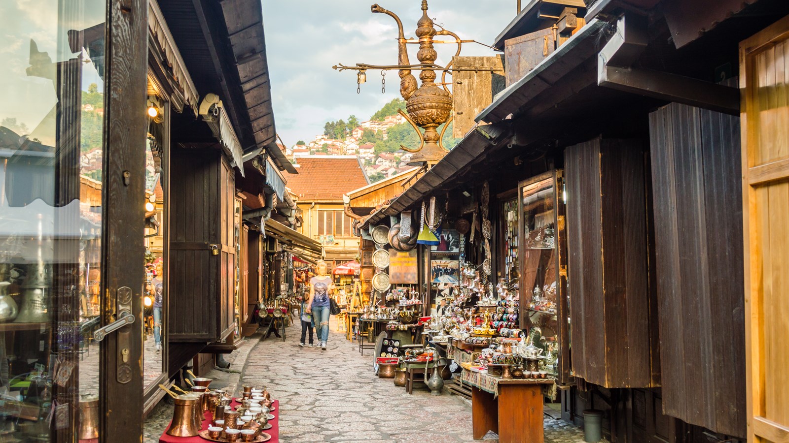 Sarajevo's historic downtown area, the Bascarsija, is a must-visit maze of winding alleys and wooden shop fronts. It contains some of the city's finest architectural monuments, along with a multitude of traditional cafés with outdoor seating. Look out for bargains on copper ware.