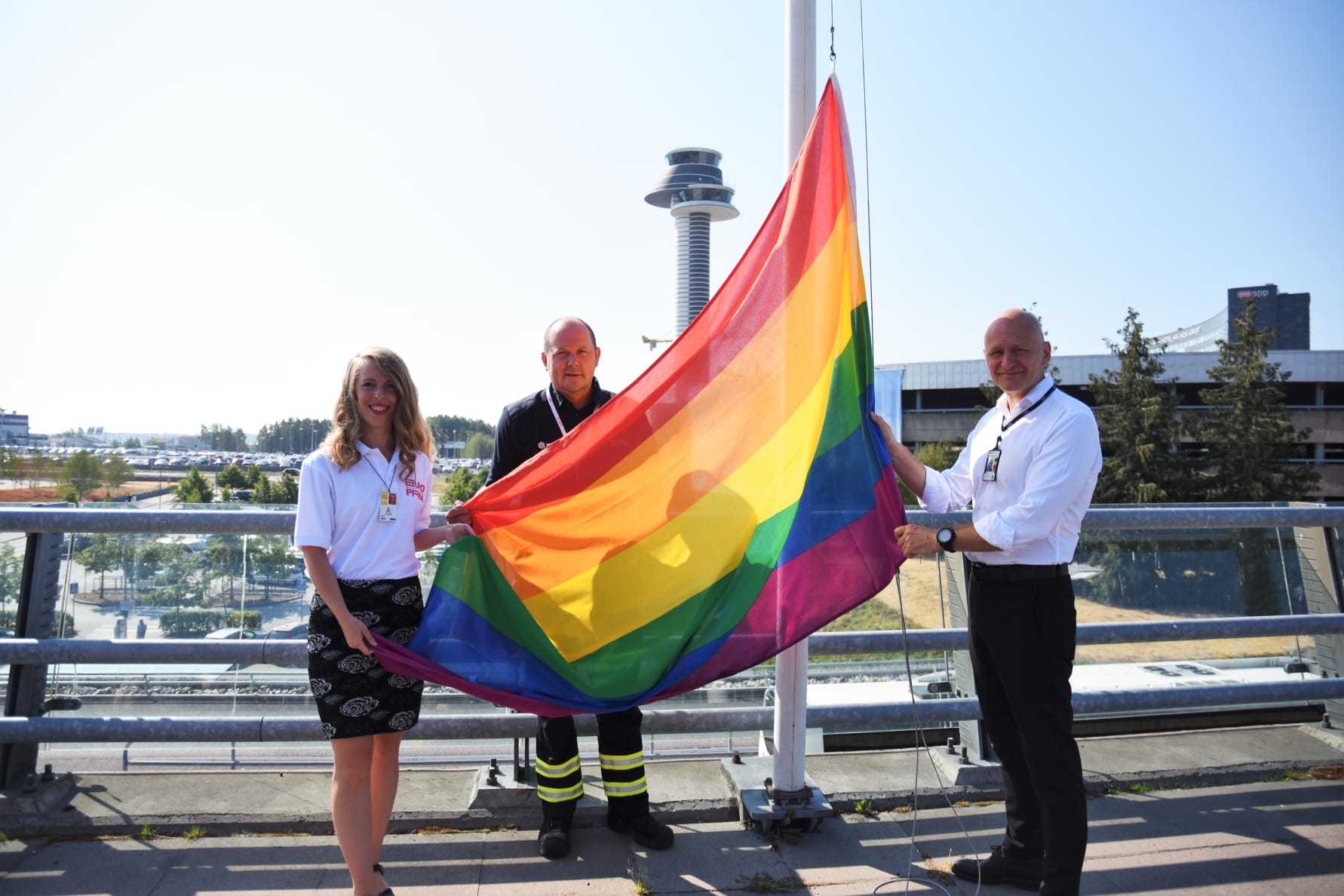 För åttonde året i följd deltar Swedavia i Stockholm Pride och årets alla andra dagar arbetar Swedavia proaktivt och målmedvetet för ett inkluderande och fördomsfritt Swedavia. Swedavias tydliga inställning är att både medarbetare, kunder och resenärer ska trivas och kunna vara sig själva hos Swedavia. I dag hissades flaggan på Stockholm Arlanda Airport för att manifestera Pridefestivalens inledning i Stockholm.