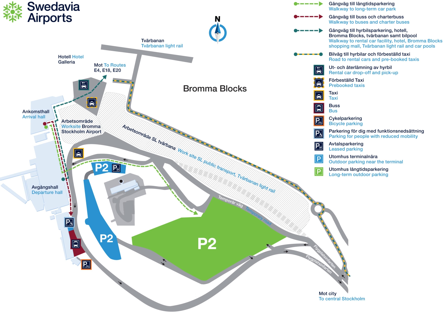 Det får till följd att hållplatserna för SL och flygbussar tillfälligt får en ny placering och att hyrbilsverksamheten får nya rutiner. Hyrbilsparkeringen ligger idag vid Bromma Blocks och hädanefter sker både hämtning och lämning av hyrbilar där.